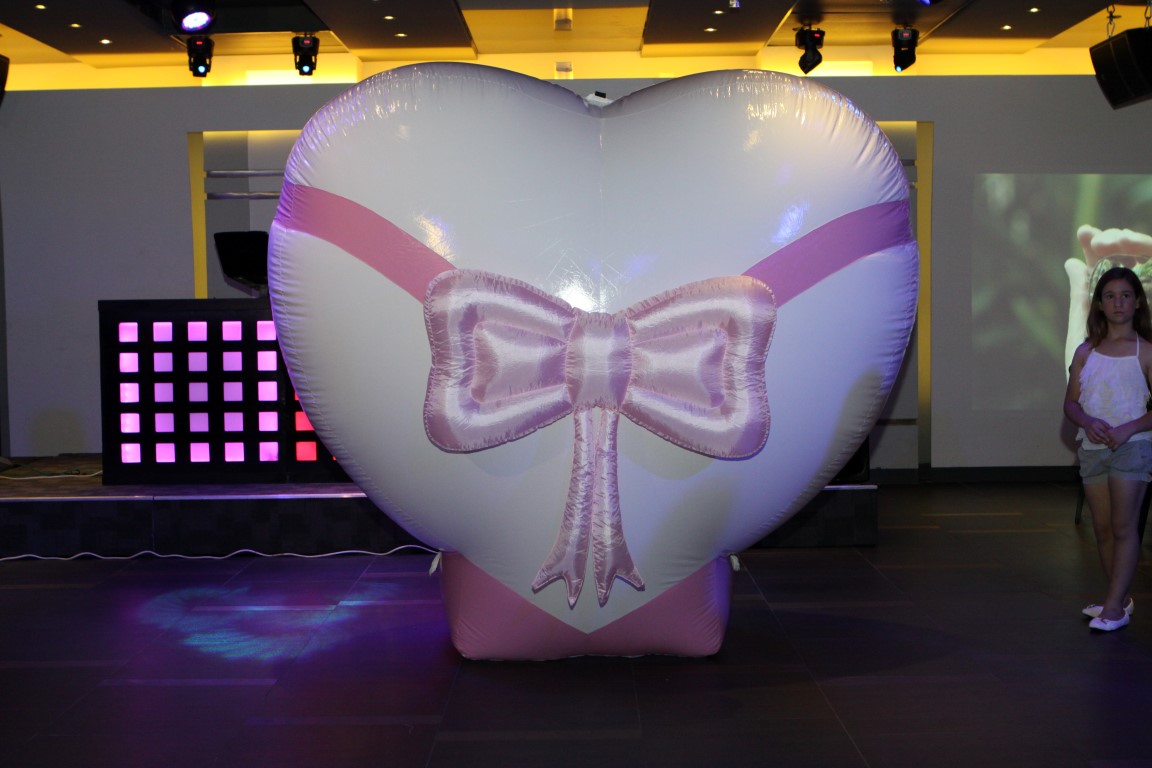 במרכז הבמה, לצלילי מוסיקה מרגשת, מוצג לב ורוד וענקי, עטוף בסרט מתנה, אשר מואר באור יקרות ובזרקורים צבעוניים.