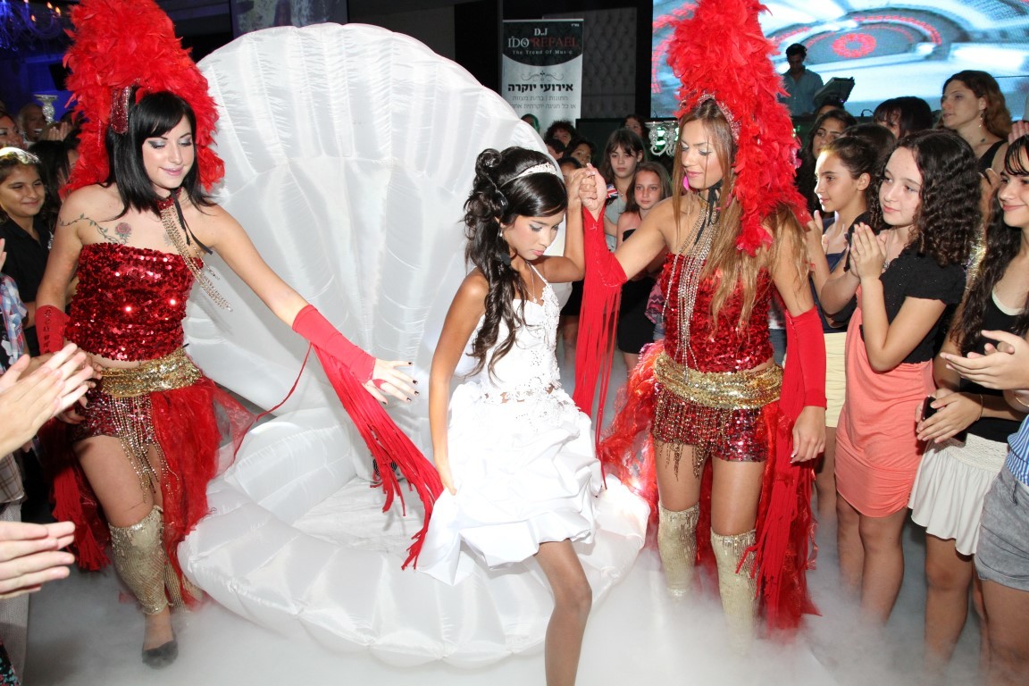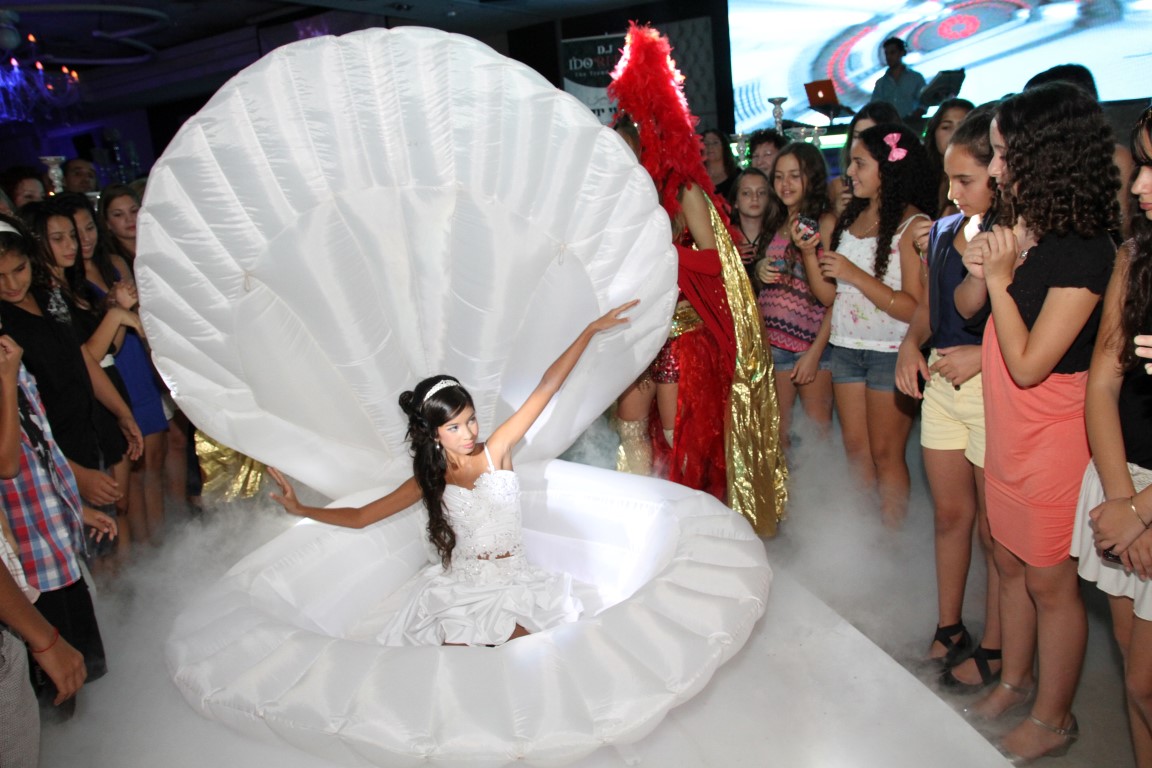 הקריין מציג בחגיגיות על פתיחת חגיגת המצווה, בדיוק כשהצדפה נפתחת במפתיע, וחושפת לעיני כל את הבת שלכם, כלת המצווה, הישובה בחינניות בתוכה, ממש כמו ונוס, אלת היופי והאהבה המיתולוגית.