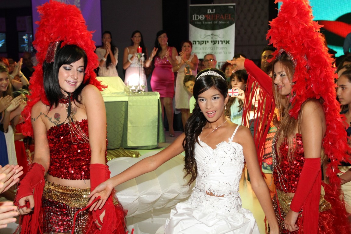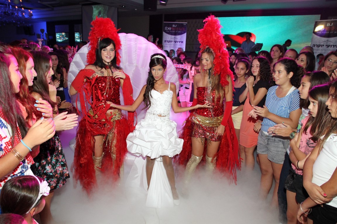 כלת המצווה מתרוממת בחגיגיות ופוצחת בשיר הפתיחה לקול תרועות הקהל המתרגש.